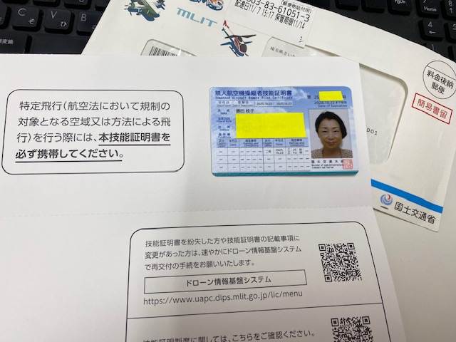 無人航空機操縦者技能証明書(通称:ドローン免許)です。
