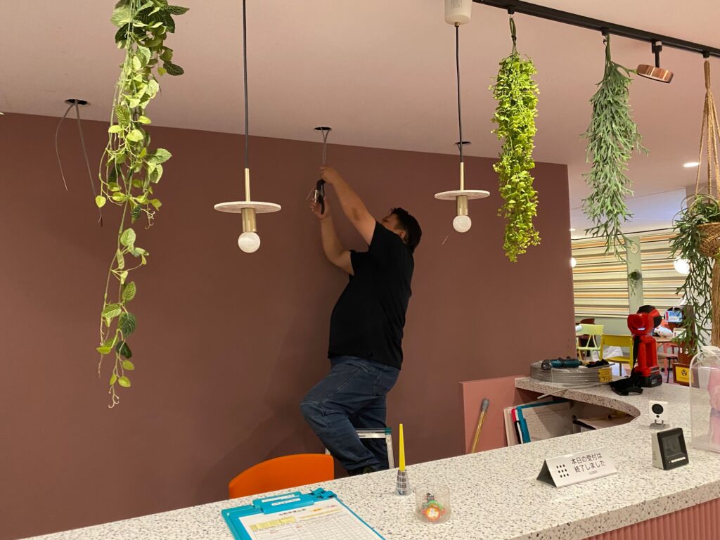 この日、照明増設の工事にいらしていた